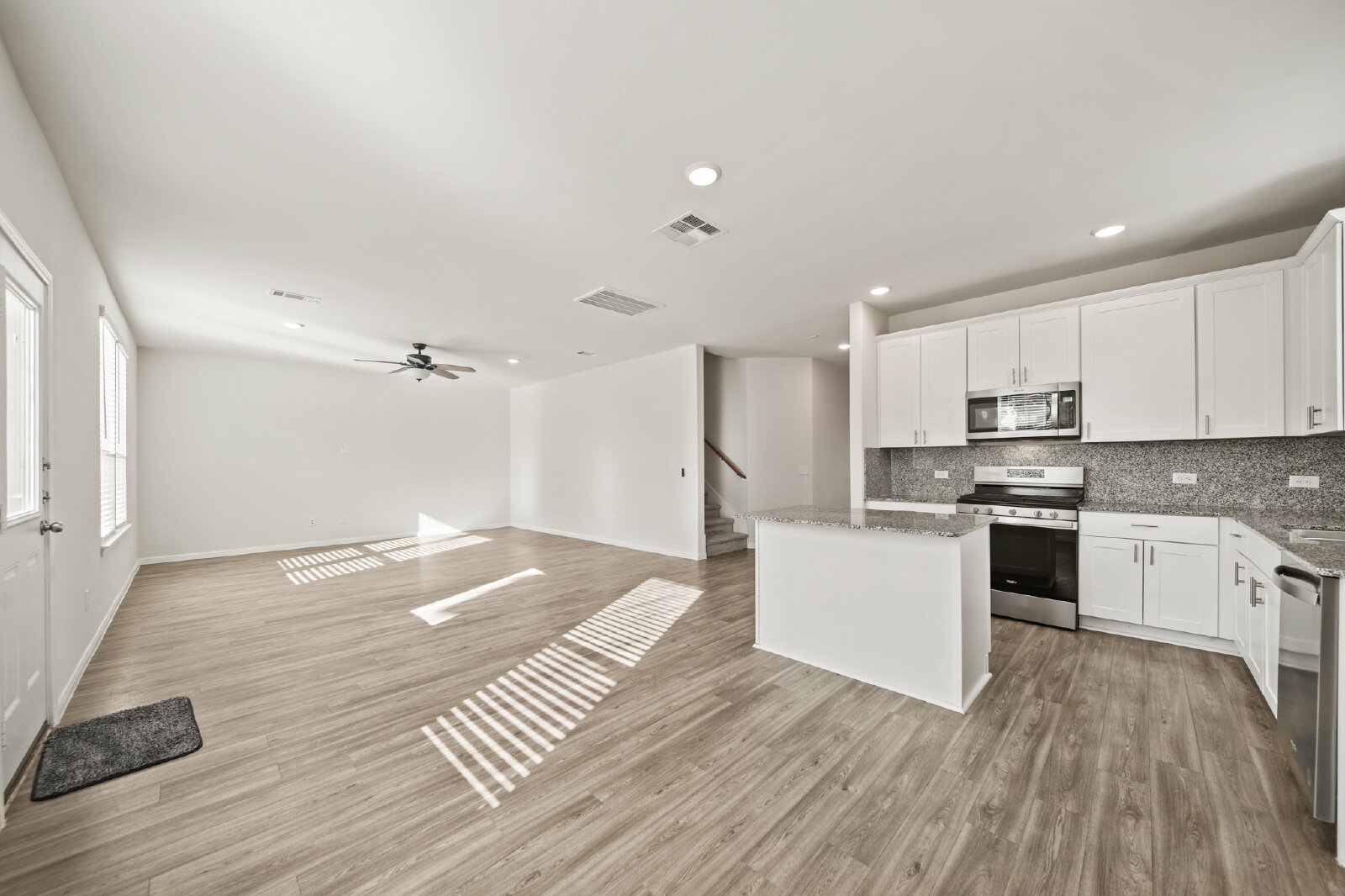 Welcome to this beautifully designed two-story home offering four spacious bedrooms and three full baths, thoughtfully crafted for both comfort and style. The main floor features an open-concept layout where the kitchen, dining area and living room flow seamlessly together, creating an inviting atmosphere perfect for everyday living and entertaining. Natural light fills the space, highlighting the modern finishes and the warm, welcoming feel of the home.