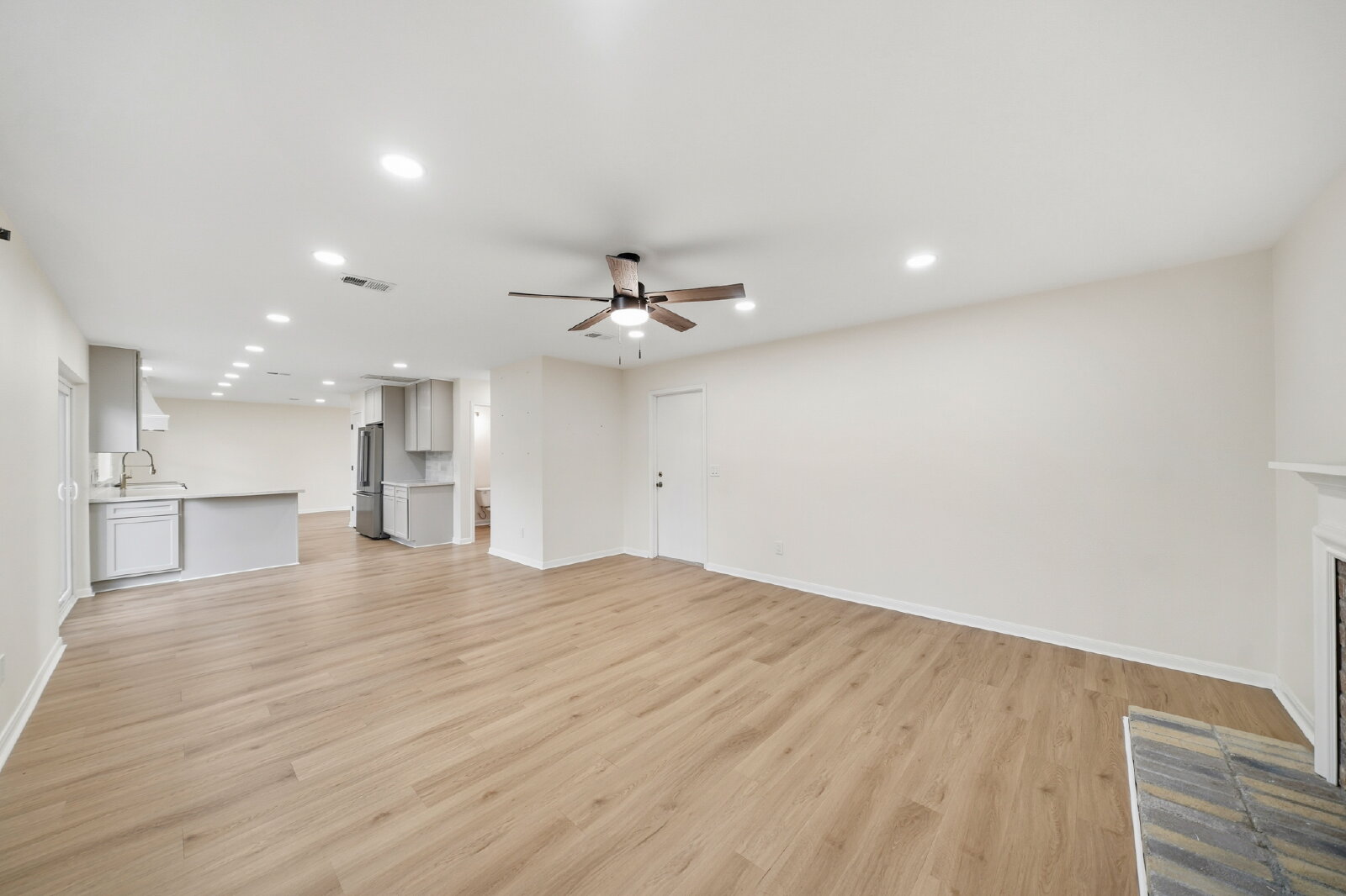 This move-in ready home offers an inviting layout featuring modern finishes throughout, a farmhouse apron sink, Quartzite Taj Mahal countertops, champagne bronze fixtures and stainless steel appliances along with a spacious pantry offering plenty of storage. The living area provides an open concept- perfect for family gatherings and everyday living. Bedrooms offer recessed lighting, ceiling fans, and luxury vinyl flooring adding extra comfort, while the primary suite serves as a serene retreat. This home offers the perfect blend of comfort and beauty. Every detail has been thoughtfully updated. Located on a corner lot, cul-de-sac, well-established community the home truly offers it all. Homes like these are rare, schedule your showing today!